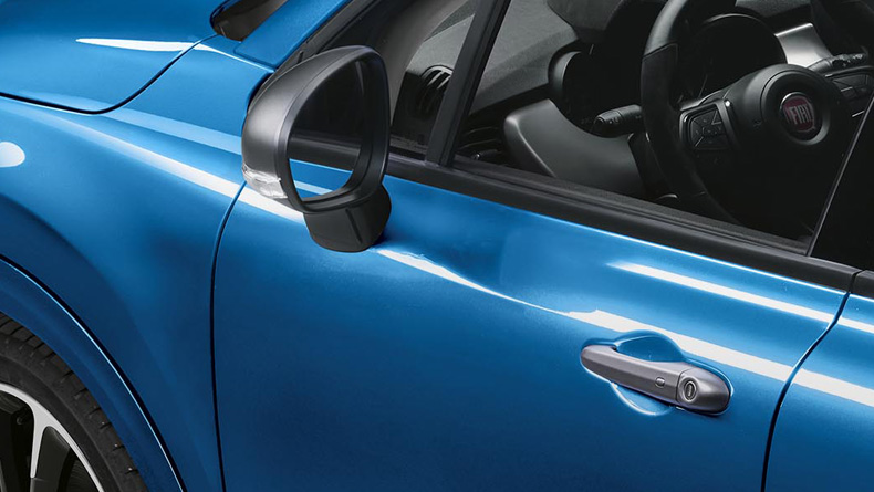 Your 5ooX Sport has sporty and elegant details that enhances its look: mirror caps, door handles and tailgate handle, all in dark grey.